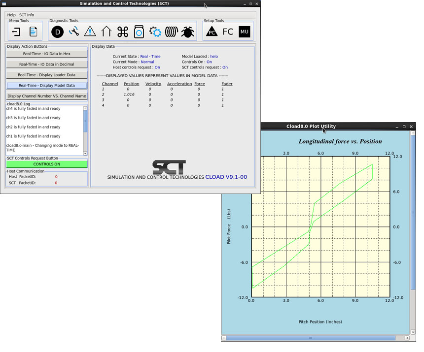 SCT provides a comprehensive and easy to use software package known as CLoad (“C-Load). These software packages contain features such as easy to use calibration and diagnostic utilities, a real-time debugger for system status monitoring, model and HOST interface development environment, and a real-time plotter. These packages are available separate from SCT’s hardware portfolio, if reuse of existing hardware is required. The CLoad package has qualified over 1500 Level D training channels.